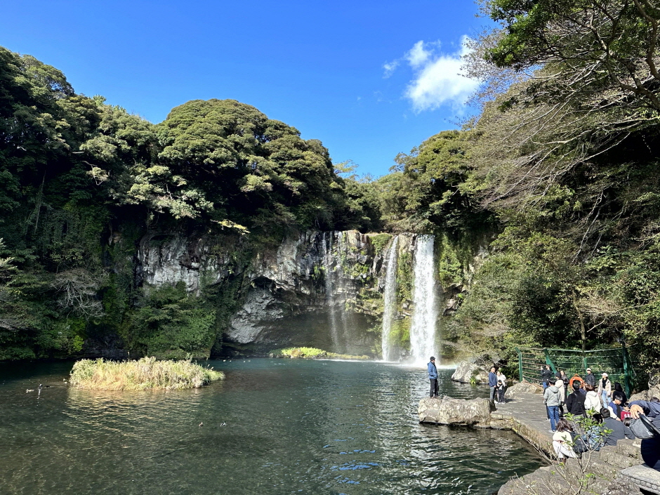 천지연 폭포는 제주 남쪽에 위치한 대표적인 폭포로, 제주도 가볼만한곳 10곳 중 자연의 웅장함을 느낄 수 있는 곳입니다. 맑은 물줄기와 울창한 숲이 어우러진 풍경은 힐링 그 자체예요.