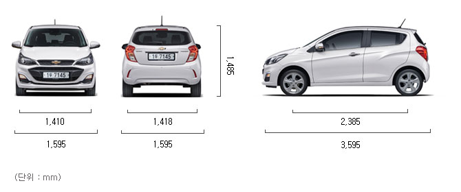 - 더 뉴 스파크 제원은 경차 규격에 맞는 실속 있는 설계.