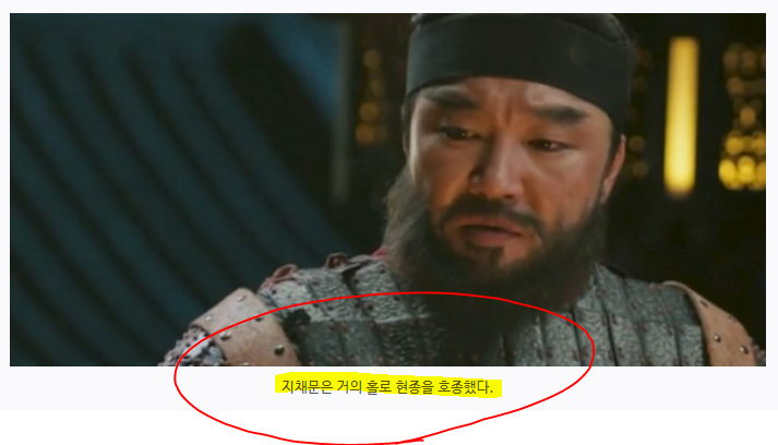 그런데 미리 피신시켜 두었던 두 왕후를 찾아 찾지 못하자 지채문 장군이 나가서 찾아왔죠 이후로 내려가는 내 내일부 신하들은 왕후들의 안전을 위해 고향으로 보내는 게 어떻겠냐고 하자 지채문 장군은 왕후들과 떨어지는 게 더 위험할 수 있다며 반대했습니다. 왕후들을 고향으로 보내자고 한 신하들은 결국 다 도망칩니다. 탈영하는 병사들과 신하들이 너무 많자 지채문 장군은 현종에게 지금까지 남은 병사들에게 상을 내려 사기를 올리라고 제안해 현종은 병사들에게 관직을 하사해 주었죠.