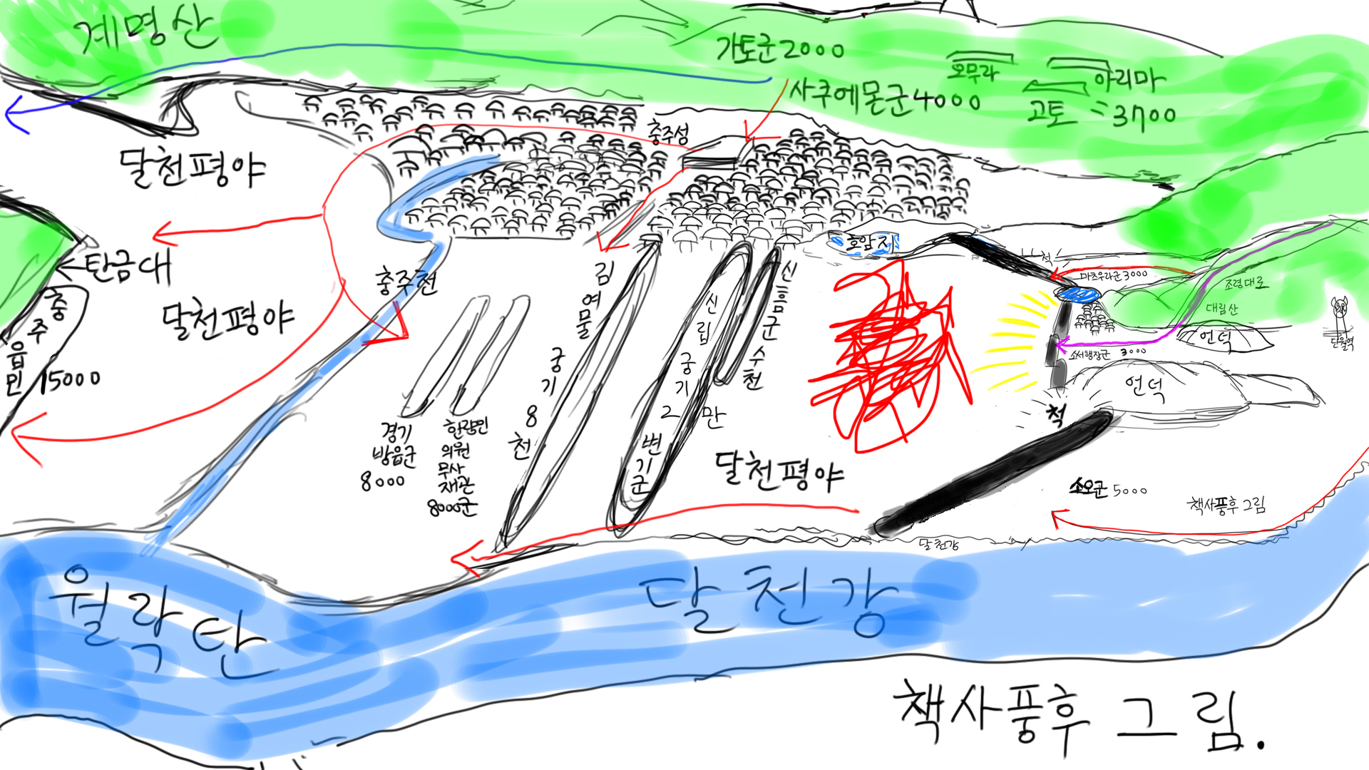 The situation at that time was not a situation in which Mungyeong Saejae was prevented to defend. Because Mungyeong Saejae was not the only way. There was no way to stop it if you took a detour. Then, you couldn't fight and open the way to the capital, so you couldn't defend at Mungyeong Saejae. Moreover, Shinrip's unit is in an urgent situation, so there is not much elite military power. I don't know if Shinrip brought the northern troops down, but because he gathered the troops from Hanseong and went down, it was difficult to get combat power when fighting the aftershocks.