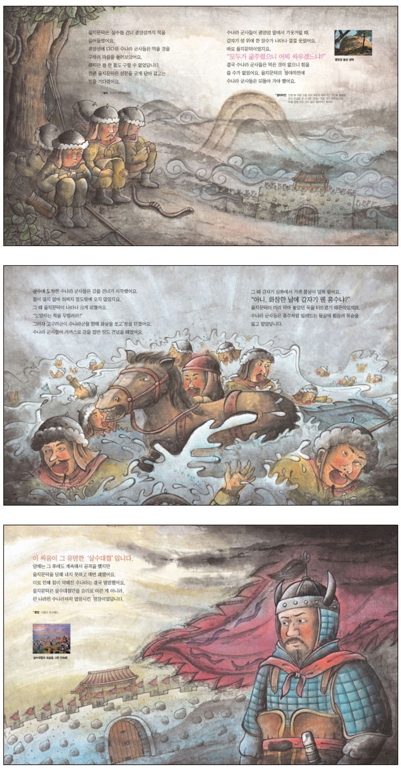 살수 대첩하면 흔히 물로 공격한 것을 떠올리는데, 한국과 중국의 사서에는 물에 대한 언급도 없고, 신채호의 조선상고사에서 꾸며낸 이야기입니다. 김부식은 고구려가 대국 수나라를 물리칠 수 있었던 것은 을지문덕 한 사람의 힘이었다라고 했지만, 삼국사기에 실린 을지문덕 이야기는 중국 사서의 기록을 재편집한 것에 불과하며, 내용도 612년 수나라를 격퇴했다는 것이 전부입니다.