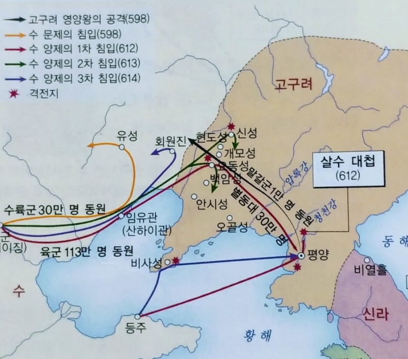 별다른 수확을 거두지 못한 별동대는 철수를 하던 도중 지금의 청천강 지역인 살수에서 매복 중이던 고구려군에게 일격을 당해 별동대 삼십만 명 중 살아 돌아온 병사가 3천여 명이 안 되는 엄청난 패배를 당하게 됩니다.